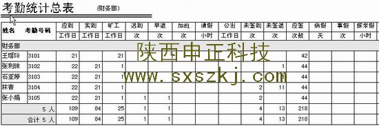 中控考勤報表樣表
